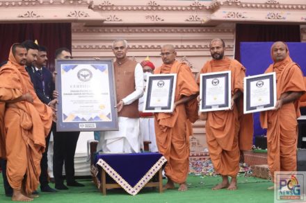 રાજકોટના સરધાર ખાતે સ્વામી નિત્યસ્વરૂપદાસજી દ્વારા મુર્તિ પ્રતિષ્ઠા મહોત્સવની ઉજવણી કરવામાં આવી હોય જેમાં આ મહોત્સવના આઠમા દિવસે અમેરિકાની વર્લ્ડ ટેલેન્ટ ઓર્ગેનાઇઝેશન દ્વારા ત્રણ વર્લ્ડ રેકોર્ડની નોંધણીના સર્ટિફિકેટ આપવામાં આવ્યા હતા.