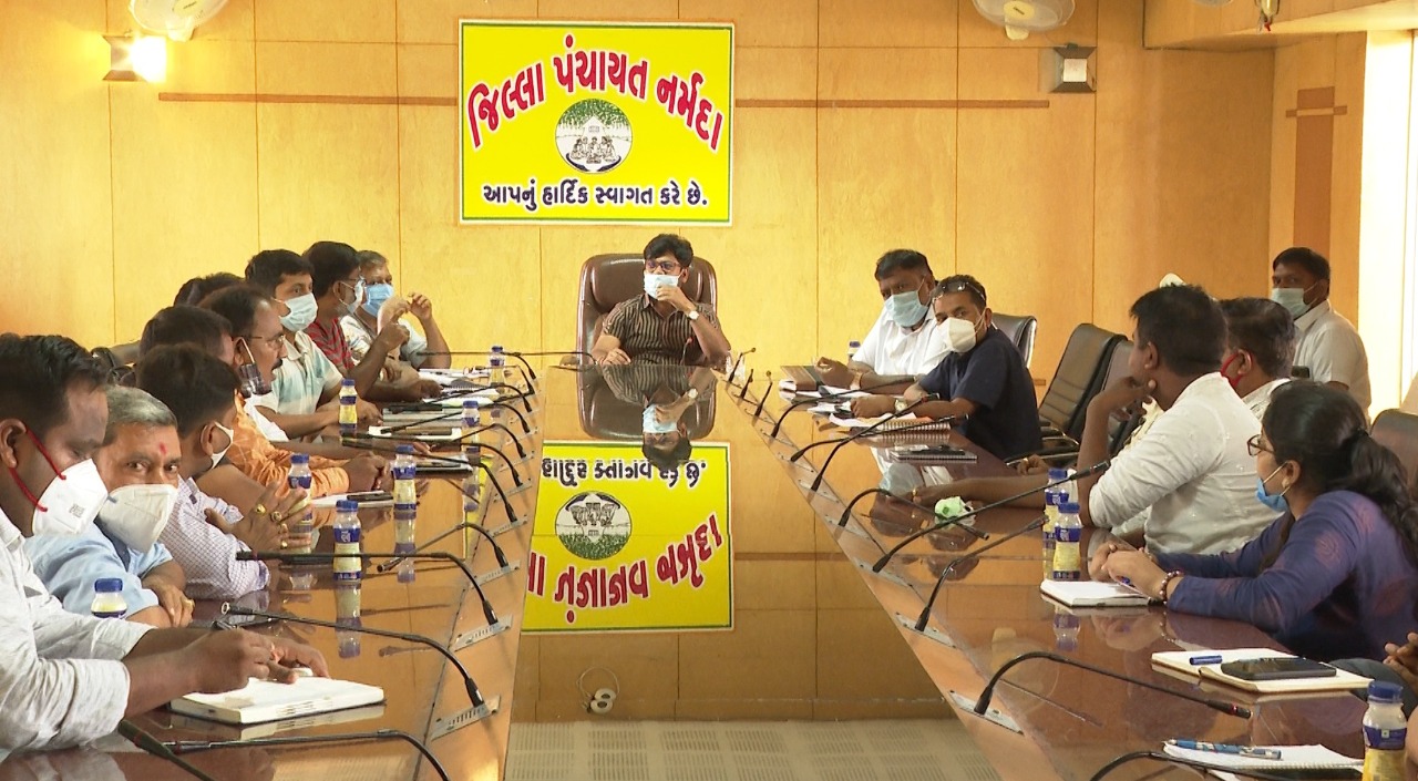 નાયબ જિલ્લા વિકાસ અધિકારી તેજશભાઇ ચૌધરી, જિલ્લા મુખ્ય આરોગ્ય અધિકારી ડૉ. કે.પી.પટેલ, અધિક જિલ્લા આરોગ્ય અધિકારી ડૉ. વિપુલ ગામીત, મામલતદારઓ, રાજપીપલા નગર પાલિકાના ચીફ ઓફીસર રાહુલ ઢોડિયા, તાલુકા આરોગ્ય અધિકારીઓ, તબીબી અધિકારીઓ, મેડીકલ એસોશિયેઅન અને વિવિધ વેપારી મંડળના પ્રમુખ નયનભાઇ કાપડીયા સહિત વિવિધ વેપારી મંડળોની ઉપસ્થિતિમાં યોજાયેલી ઉક્ત બેઠકને સંબોધતા પ્રાંત અધિકાર કે.ડી.ભગતે જણાવ્યું હતું કે, નર્મદા જિલ્લામાં કોવિડ-૧૯ રસીકરણના ભાગરૂપે રાજપીપલા સહિત જિલ્લાના ગરૂડેશ્વર, તિલકવાડા, દેડીયાપાડા અને સાગબારામાં પણ તા.૨૫ મી જુલાઇના રોજ ખાસ વેક્સીનેશન સેન્ટરો ઉભા કરાશે જેમાં, વ્યાપાર-ધંધા-વ્યવસાય કે અન્ય વ્યાપારિક ધંધા સાથે સંકળાયેલા લોકોને અગ્રતાના ધોરણે કોરોના વેક્સીનેશનમાં મહત્તમ વેક્સીનેશન હાથ ધરવા જાહેર અનુરોધ કર્યો હતો.