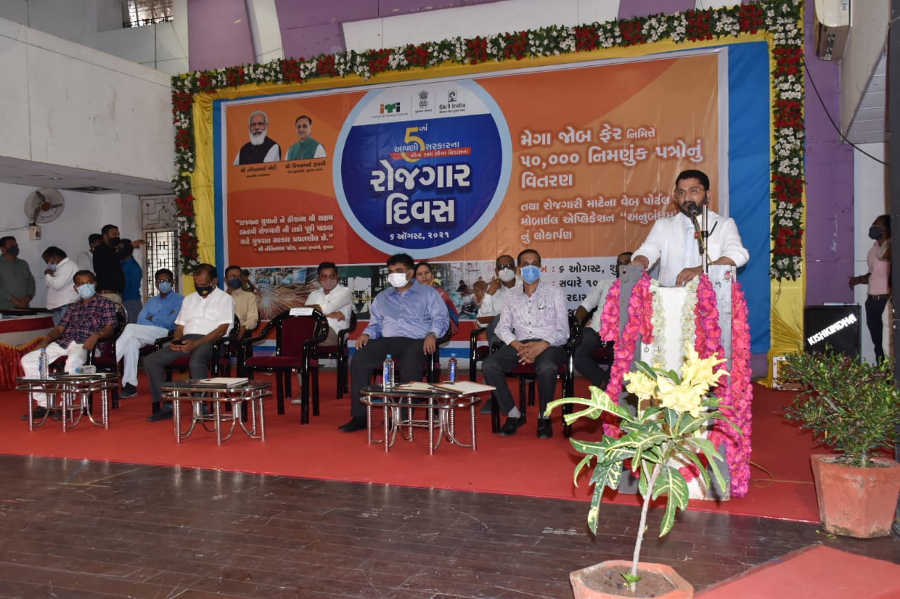ગુજરાતના સામાજિક ન્યાય અને અધિકારીતા વિભાગના મંત્રી ઇશ્વરભાઇ પરમારે તેમના ઉદ્દબોધનમાં જણાવ્યું હતું કે, રાજ્યના મુખ્યમંત્રી અને નાયબ મુખ્યમંત્રી નિતિનભાઇ પટેલની નેતૃત્વની સરકારે રોજગાર વાંચ્છુઓને ઘર આંગણે જ રોજગારી મળી રહે તે માટે શૈક્ષણિક ક્ષેત્રમાં અનેકવિધ યોજનાઓ અમલમાં મૂકી છે. ઉદ્યોગોની જરૂરિયાત મુજબ કૌશલ્યલક્ષી માનવબળની ઉપલબ્ધિ માટે ઔદ્યોગિક ભરતી મેળાઓનો નવતર અભિગમ રાજ્ય સરકાર દ્વારા અમલમાં મૂકીને રોજગારીની તકોનું નિર્માણ કરીને નોકરીદાતાઓને રોજગારી પૂરી પાડી છે.