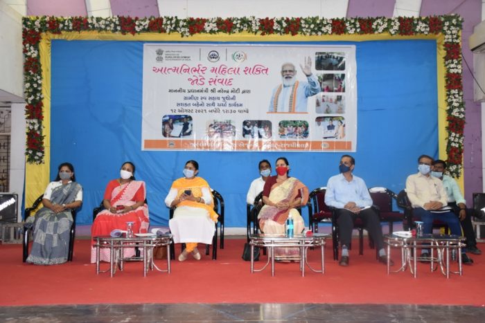 આ પ્રસંગે જિલ્લાના મહિલા અગ્રણી શ્રીમતી દર્શનાબેન દેશમુખ અને દિનાબેન સંઘવીએ કાર્યક્રમને અનુલક્ષીને પ્રસંગોચિત ઉદબોધન કર્યું હતું.દેશના વડાપ્રધાન નરેન્દ્રભાઇ મોદીએ ઓનલાઇન વર્ચ્યુઅલના માધ્યમ થકી યોજાયેલા “આત્મનિર્ભર મહિલા શક્તિ સંવાદ” કાર્યક્રમમાં વિવિધ મહિલાઓ સાથે આત્મિયતાસભર સંવાદ સાધીને સરકારની વિવિધ યોજનાઓનો લાભ લઇને આત્મનિર્ભર બનવા જરૂરી સૂચનો સાથે માર્ગદર્શન પુરું પાડ્યું હતું. આ પ્રસંગે જિલ્લાના અન્ય તાલુકા મથકો સહિત ગ્રામ્ય વિસ્તારોમાં પણ “આત્મનિર્ભર મહિલા શક્તિ સંવાદ” ઓનલાઇન વર્ચ્યુઅલના માધ્યમ થકી ગ્રામજનોએ જીવંત પ્રસારણ નિહાળ્યું હતું.