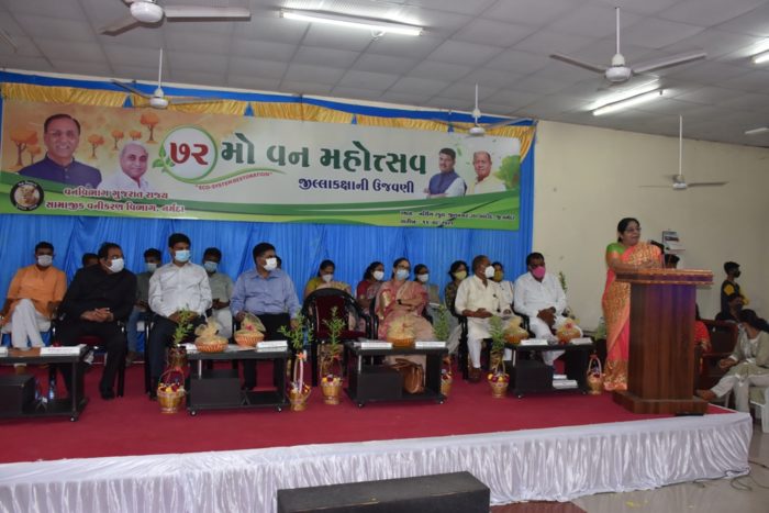 ગુજરાતના મહિલા આયોગના અધ્યક્ષ લીલાબેન આંકોલીયા, ધારાસભ્ય પી.ડી.વસાવા, જિલ્લા પંચાયતના પ્રમુખ પર્યુષાબેન વસાવા, પૂર્વ રાજયમંત્રી શબ્દશરણ તડવી, જિલ્લા કલેકટર ડી.એ.શાહ, નાયબ વન સંરક્ષક નિરજકુમાર અને પ્રતિક પંડયા, જિલ્લા પંચાયતની કારોબારી સમિતિના અધ્યક્ષ મમતાબેન, અગ્રણી વિઠ્ઠલભાઇ તડવી, અજીતભાઇ પરીખ સહિત પદાધિકારીઓ/અધિકારીઓ અને વૃક્ષપ્રેમીઓની ઉપસ્થિતિમાં રાજપીપલામાં નર્સિગ સ્કૂલ-જીતનગર ખાતે ૭૨ માં જિલ્લા કક્ષાના વન મહોત્સવની યોજાયેલી ઉજવણીને દિપ પ્રાગટય દ્વારા ખૂલ્લી મૂકાઇ હતી. આ પ્રસંગે ઉપસ્થિત મહાનુભાવોના હસ્તે વૃક્ષારોપણ કરવામાં આવ્યું હતું.