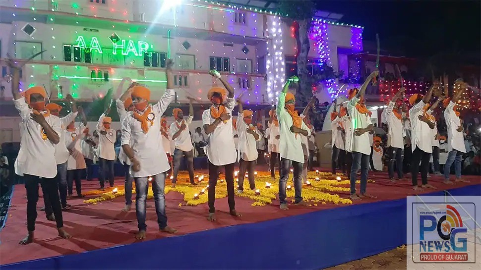આ વર્ષે સતત આઠમા વર્ષે નર્મદા,ભરૂચ, વડોદરા સુરત જિલ્લાના 10 થી 40 વર્ષ સુધીના સફેદ વસ્ત્ર અને કેશરી સાફામાં સજ્જ 100 થી વધુ રાજપૂત યુવકોએ સતત 1 કલાક 30 મિનિટ સુધી લાગલગાટ ઢોલ નગારાના તાલે રિધમમાં તલવારના દિલધડક કરતબોથી મહાઆરતી કરતા હાજર હજારો ભક્તો દંગ રહી ગયા હતા.