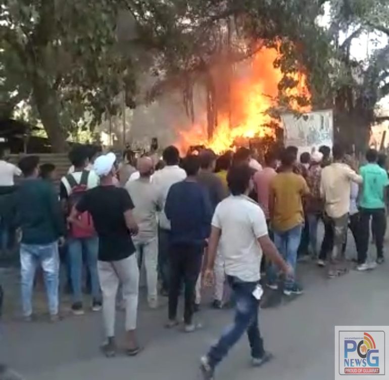 આજરોજ રાજપીપળા ખાતે હરસિધ્ધિ માતા બેક રોડ પર આવેલ ભગવાન સ્વામી કમ્પાઉન્ડમાં આવે રાધા કૃષ્ણ ટ્રેડર્સની ઓફિસ અને અને બાજુમાં આવેલ ગોડાઉનમાં ભર બપોરે અચાનક આગ ફાટી નીકળી હતી. આગની જ્વાળાઓએ આ કમ્પાઉન્ડને આગની લપેટમા લીધું હતું અને જોતજોતામાં ઓફિસને ગોડાઉન આગની લપેટમા આવી જતા ઓફિસ અને ગોડાઉન બળીને ભસ્મિભૂત થઈ થઈ ગયું હતું. આગ લાગતા બાજુમાં જ આવેલ વડનું તોતિંગ ઝાડ પણ આગની લપેટમાં આવી જતા ઝાડ પણ બળવા લાગ્યું હતું.
