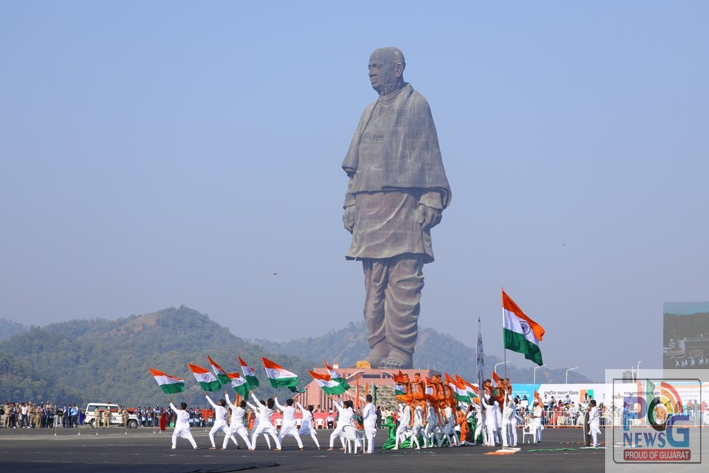 કેવડિયા ખાતે સ્ટેચ્યુ ઓફ યુનિટીના સાંન્નિધ્યમાં રાષ્ટ્રીય એકતા દિવસની આન બાન અને શાન સાથે શાનદાર ઉજવણી કરાઈ.