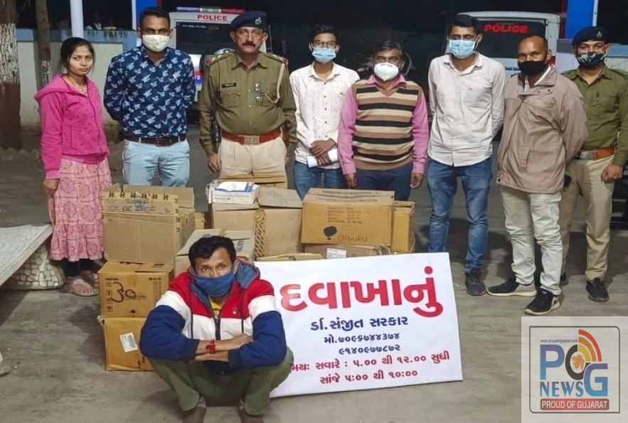 પોલીસ અધીક્ષક નર્મદા હિમકર સિહે જીલ્લામાં ડિગ્રી વગરના બોગસ તબીબો દ્વારા માનવ સ્વાસ્થ સાથે ચેડા સંબંધી ગુનાઓ બનતા અટકાવવા અંગે પરીણામલક્ષી કામગીરી અંગે આપેલ સુચનાઓ અનુસધાને નાયબ પોલીસ અધિક્ષક વાણી દૂધાતકેવડીયાના માર્ગદર્શન હેઠળ એમ.બી ચૌહાણને મળેલ બાતમીને આધારે સ્ટાફના માણસો સાથે તેમજ ઝરીયા પ્રાથમીક આરોગ્ય કેન્દ્રના મેડીકલ ઓફીસર મયુરભાઈ નગીનભાઈ તડવીને સાથે રાખી હરીપુરા ગામે વણજી જવાના રોડ ઉપર દવાખાનુ ચલાવી આરોપી સંજીતભાઈ નીખીલભાઈ સરકાર (ઉ.વ ૪૩ હાલ રહે હરીપુરા ગામ તા.ગરૂડેશ્વર જી.નર્મદા મુળ રહે. આલીપુર બાસ્તલા તા.મેમારી જી.વર્ધમાન (વેસ્ટ બંગાળ ) એ બોગસ દવાખાનુ ચલાવી ગુજરાત મેડીકલ કાઉન્સીલનુ મેડીકલ પ્રેકટીસ અંગેનું પ્રમાણપત્ર ન હોવા છતાં એલોપેથીક પ્રેકટીશ કરી એલોપેથીક દવાઓ, ગોળીઓ, ઈન્જકશનો, સીરપની બોટલો, પાઈન્ટની બોટલો, નિડલો,સ્ટેથોસ્કોપ, બીપી ઈસ્યુમેન્ટ વિગેરે એલોપેથીક મેડીક્લ પ્રેકટીશ કરવા અંગેના સાધનો, દવાઓ મળી કુલ કિ.રૂ ૭૮૫૯૯/- નો મેડીકલ પ્રેકટીશ