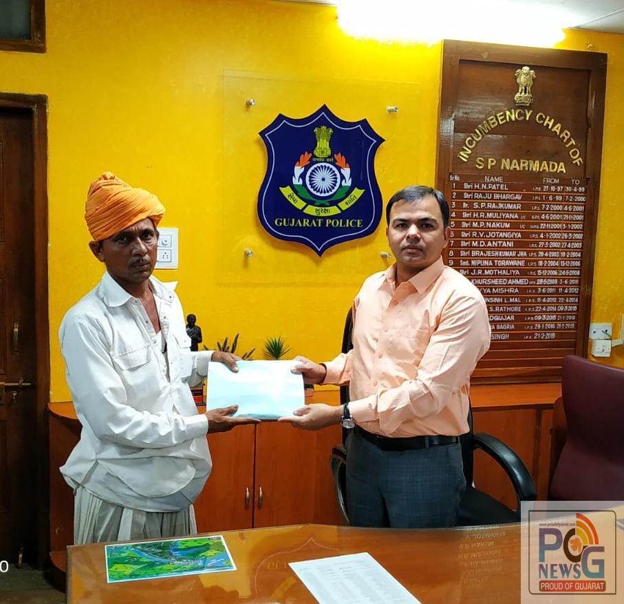 પ્રાપ્ત માહિતી અનુસાર નર્મદા પોલીસ અધિક્ષક હિમકરસિંહ દ્વારાનિર્ભયા ટીમમાં ફરજ બજાવતા મહિલા પોલીસ લોકરક્ષક ગોસ્વામી વર્ષાબેન ડુંગરપુરીનું તારીખ 9/12/2021 રોજ પેટ્રોલિંગ કરતી વખતે વાહન અકસ્માતમાં દુખદ અવસાન થયું હતું તેમના પરિવાર માટે દુઃખ નું પહાડ તૂટી ગયો હતો કેમ કે એમના પરિવારમાં કમાવવાવાળું બીજુ કોઈ નથી. આવા સમયે નર્મદા પોલીસ અધિક્ષક હિમકરસિંહ પરિવારના પડખે ઊભા રહી નર્મદા પોલીસ પરિવાર દ્વારા વર્ષાબેનના પિતા ગોસ્વામી ડુંગરપુરીને રૂપિયા બે લાખ દસ હજાર રોકડા સહાય આપી ગરીબ પરિવારને મદદરૂપ થયા. ખરેખર પોલીસ અધિક્ષકે ગરીબોના મસીહા બનીને ખૂબ જ ઉત્તમ કાર્ય કર્યું હતું.