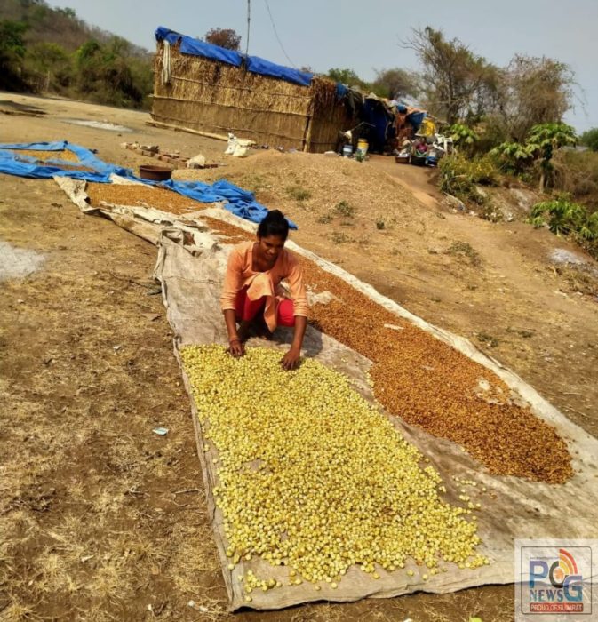 લઇને આવવાના શરુ થયાં છે. મહુડા ફૂલ વીણીને તેને સુકવે છે, સુકવીને તે નિગમને કે એજન્ટને વેચે છે. પહેલા રોકડા પૈસા મળતા હતા હવે ચેકથી પેમેન્ટ થાય છે. મહુડાનાં ફૂલ આદિવાસીઓ માટે રોજગારીનું સાધન ગણાય છે. મહૂડાની સિઝન એપ્રિલથી ૩૦ મે સુધી ચાલે છે. મહૂડાના ઝાડ પર પહેલા પાન ખરી જાય છે તેથી ઝાડ બોડકુ થઇ જાય છે, ત્યાર પછી તેને હાથા આવે છે. પછી ફૂલ આવવાના ચાલુ થાય છે. ફૂલને વીણીને આદિવાસીઓ છાપરે ઘર પર સુકવી દે છે, અને પછી તેને વેચી દે છે.