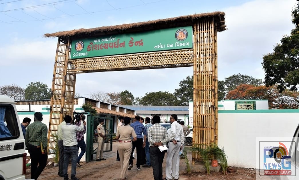 ગુજરાતના મુખ્યમંત્રી ભૂપેન્દ્રભાઇ પટેલની પ્રેરક ઉપસ્થિતિમાં આજે તા.૨૬ મી મેના રોજ નર્મદા જિલ્લાના આદિવાસી અને અંતરિયાળ વિસ્તાર દેડીયાપાડા તાલુકા મથકે વાંસ આધારિત કૌશલ્યવર્ધન કેન્દ્ર (રૂરલ મોલ) સહિત છોટાઉદેપુરના કેવડી, ભરૂચના નેત્રંગ અને આહવા ડાંગના વઘઇ મળી કુલ ચાર કૌશલ્યવર્ધન કેન્દ્રોનું લોકાર્પણ કરવામાં આવ્યું હતું. દેડીયાપાડા ખાતે લોકાર્પણ થયેલ કૌશલ્યવર્ધન કેન્દ્રની વિશેષતા અંગેની આજે આપને નર્મદા વન વિભાગના નાયબ વન સંરક્ષક નીરજ કુમાર સાથે મુલાકાતમા વાત કરતા જણાવ્યું હતું કે અહીં એકજ સ્થળે રૂરલ મોલ, વર્કશોપ, સાતપુડા વન ભોજનાલય, આયુષ આરોગ્ય કુટીરનો સમાવેશ કરાયો છે. જે પ્રવાસન સ્થળ તરીકે ઊભરી રહેલા દેડિયાપાડા તાલુકામાં પ્રવાસન અર્થે આવતા પ્રવાસીઓને આકર્ષિત કરશે. સ્થાનિક આદિવાસી કારીગરો, મહિલાઓને રોજગારી પુરૂં પાડવા માટેનું એક ઉત્તમ માધ્યમ બની રહેશે.