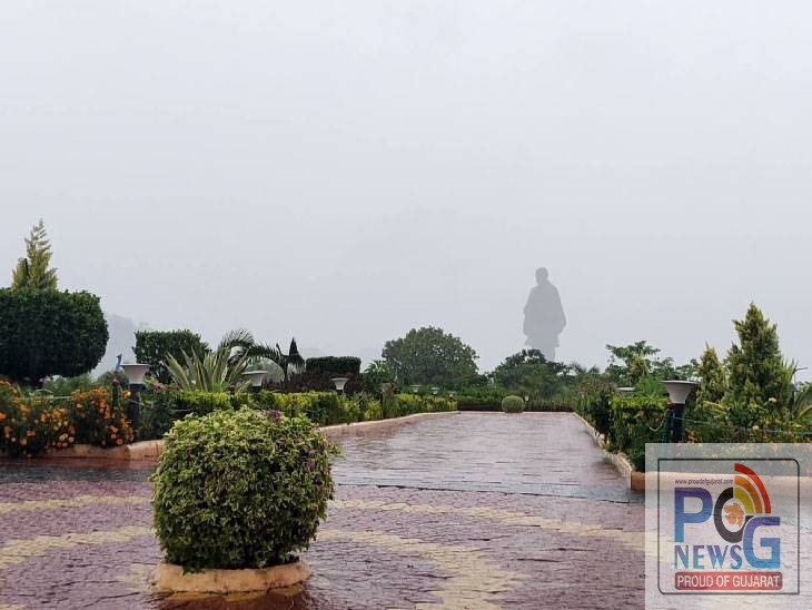 કેવડિયા વિસ્તારમાં આજે સવારે 6 કલાક સુધી ધીમી ધારે વરસાદ વરસતા આહલાદક વાતાવરણ સર્જાયું હતું. સ્ટેચ્યુ ઓફ યુનિટીનું આસપાસનું વાતાવરણ વરસાદના લીધે પ્રકૃતિ સોળા કળાએ ખીલી ઉઠી છે. જેના લીધે નર્મદા ડેમ અને સ્ટેચ્યુ ઓફ યુનિટી પાસે મિની કાશ્મીર જેવાં આહલાદક દૃશ્યો સર્જાયા છે. તેમજ સરદાર સરોવર નર્મદા ડેમની સપાટીમાં પણ વધારો નોંધાયો છે. ઉપરવાસમાંથી 8 હજાર 558 ક્યુસેક પાણી આવક થઇ રહી છે. હાલ નર્મદા ડેમ 114.38 મીટર પર પહોંચી છે. ધીમેધીમે સપાટીમાં વધારો થઈ રહ્યો છે. સરદાર સરોવરના CHPH ના 2 પાવર હાઉસ ચાલુ કરાયા છે અને વીજ ઉપ્તાદન કરવામાં આવી રહ્યું છે. આ વર્ષે સારા વરસાદને પગલે નર્મદા ડેમ તેની મહત્તમ સપાટી 138.68 મીટરે પહોંચશે અને સરદાર સરોવર છલોછલ ભરાશે એવી શક્યતાઓ નર્મદા નિગમના આધિકારીઓ રાખીને બેઠા છે.