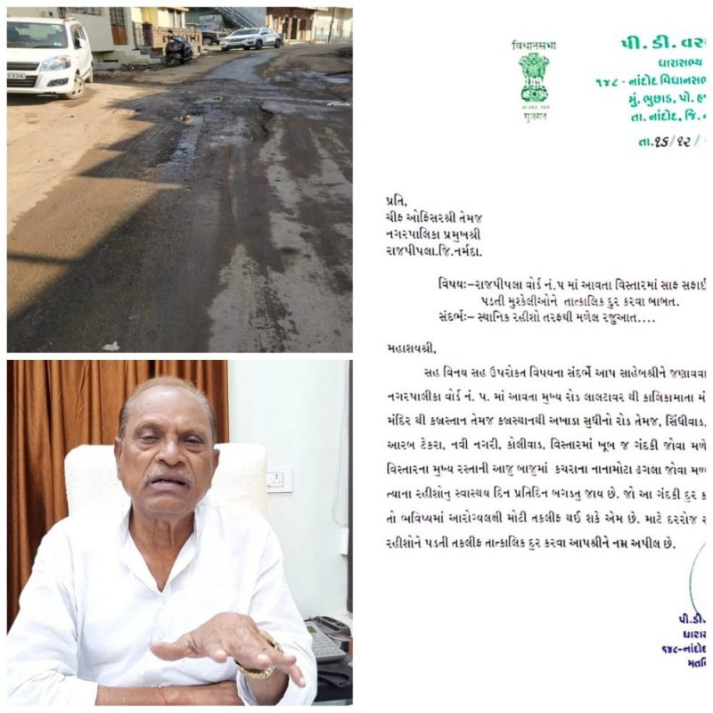 રાજપીપળા શહેરના અમુક વિસ્તારમાં તો સફાઈના મુદ્દે અને ગટર રીપેરીંગના મુદ્દે વારંવાર જોકે વોર્ડના સભ્યોને રજૂઆત કરવા છતાં પણ કામો થતાં નથી એવી રાજપીપળા ચર્ચાનો વિષય જોર પકડ્યું છે. રાજપીપળા નગરપાલિકામાં હાલમાં ભાજપ કોંગ્રેસ અપક્ષ આ ત્રણે પક્ષ સાથે મળીને રાજપીપલા નગર પાલિકાનો વહીવટ કરી રહી છે છતાં પણ નગર જોઇને સફાઈના મુદ્દે રાજપીપળા નગરપાલિકા નિષ્ફળ જતી દેખાઈ રહી છે. ધારાસભ્ય પી ડી વસાવાએ પોતાના પત્રમાં એમ જણાવ્યું હતું કે રાજપીપળા પાલિકા વોર્ડ નંબર 5 માં આવતા મુખ્ય રોડ લાલ ટાવરથી કાલિકા માતાજીના મંદિરથી કબ્રસ્તાન જતા અખાડા સુધીનો રોડ અને સાથે બાવાગોર ટેકરી આરબ ટેકરા નવીનગરી કોઈવાર આ વિસ્તારમાં જ ગંદકી તેમજ આ વિસ્તારમાં કચરા નામે ઢગલા જોવા મળે છે જેથી આ વિસ્તારના રહીશોનું આરોગ્ય પ્રતિદિન બગડતું જાય છે. જો ગંદકી દૂર નહીં કરવામાં આવે તો ભવિષ્યમાં આરોગ્યલક્ષી મોટી સમસ્યા ઉભી થવાની સંભાવનાઓ રહે છે. રોજ રોજ સફાઈ કરી લોકોને પડતી તકલીફો દૂર કરવા આવે ઉલ્લેખનીય એ છે કે સામાન્ય સફાઇ બાબતે ધારાસભ્યના કક્ષાના વ્યક્તિ રજુઆત કરવી પડતી હોય તો એનાથી શરમ જનક બાબત બીજી કોઇ ન કહેવાય બીજી એ કે ધારાસભ્ય સુધી આ બાબત હું ફરિયાદ એમણે આ રજૂઆત કરી છે તો એનો મતલબ એ થાય છે કે રાજપીપળા પાલિકા સત્તાધારીઓ પાસે થયેલી રજૂઆત જતા કોઈના દ્વારા ધારાસભ્યને કોઈ ફરિયાદ કરવાનો વારો આવ્યો હશે તો જ સફાઈના પાલિકાને રજુઆત કરવી પડી છે. હવે જોવા જેવું રહ્યું કે ધારાસભ્યની સફાઈના મુદ્દે પત્રનો કેટલો રાજપીપળા પાલિકા ગંભીર લઈને કેટલી સત્તા વાપરે છે એ જોવા જેવું રહ્યો અને શુ રાજપીપળાની જનતા આવતી પાલિકાની ચૂંટણીમા હાલના સભ્યને કેટલો શબક શીખવાડે છે એવી રાજપીપળા મા ચર્ચાનો વિષય બન્યો છે.