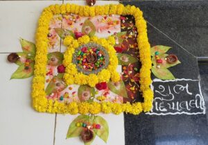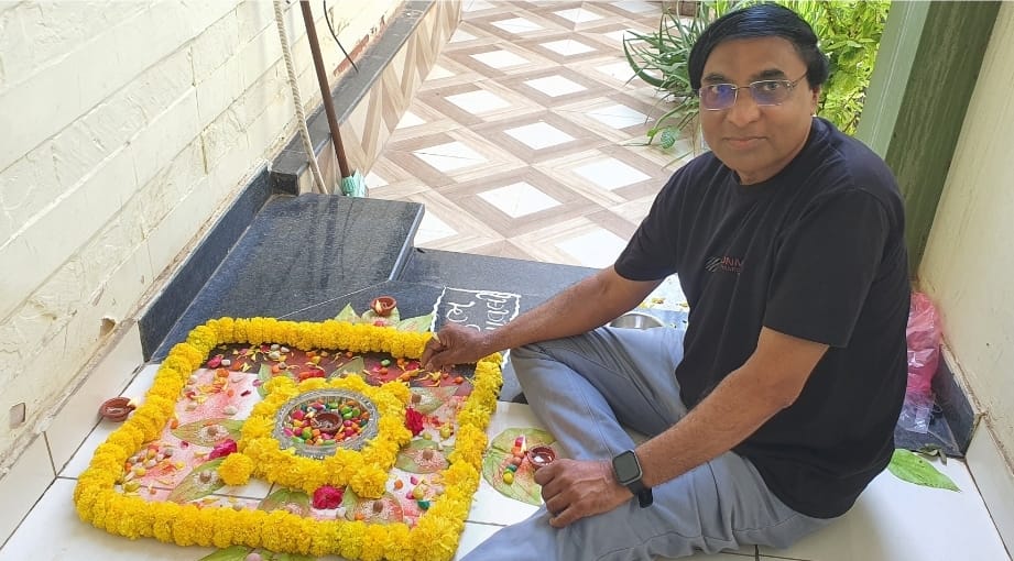 દીપક જગતાપના જણાવ્યા અનુસાર શુભકામમાં વપરાતા ગલગોટા અને ગુલાબના ફૂલો, ઉપરાંત રંગીન પથ્થરો, નાગરવેલના પાન, સોપારી, કંકુ, ચોખા, અને માટીના દીવડા જેવા કુદરતી સંશાઘનોનો ઉપયોગ કરી ઇકોફ્રેન્ડલી રંગોળી બનાવેલી છે. આપણે સૌ રંગોળીમા કુદરતી સંશાઘનોનો ઉપયોગ કરવો જોઈએ તેવો મેસેજ આપી દીપાવલી પર્વની સૌને રંગોળીના માધ્યમથી શુભેચ્છા પાઠવી હતી.