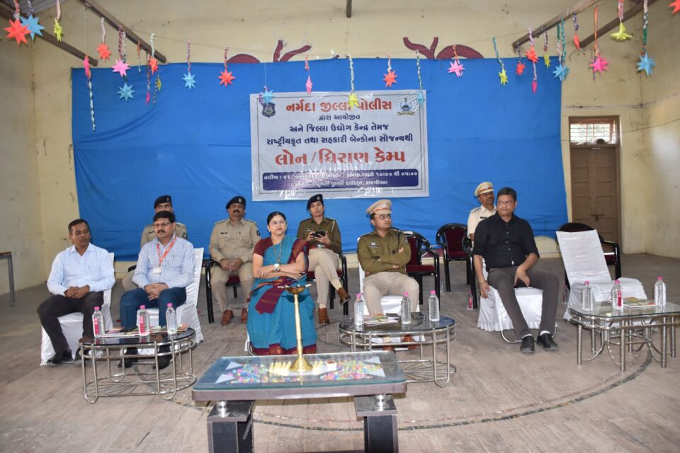 નર્મદા જિલ્લા પોલીસ અધિક્ષક પ્રશાંત સુંબેની અધ્યક્ષતા અને નાંદોદના ધારાસભ્ય ડો. દર્શનાબેન દેશમુખની પ્રેરક ઉપસ્થિતિમાં જિલ્લા પોલીસતંત્ર દ્વારા જિલ્લા ઉદ્યોગ કેન્દ્ર, રાષ્ટ્રીયકૃત તથા સહકારી બેન્કોના સંયુક્ત ઉપક્રમે છોટુભાઈ પુરાણી હાઈસ્કુલ, રાજપીપલાના સભાખંડમાં લોન-ધિરાણ અંગે માર્ગદર્શન કેમ્પનું આયોજન કરવામાં આવ્યું હતું.
