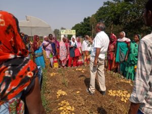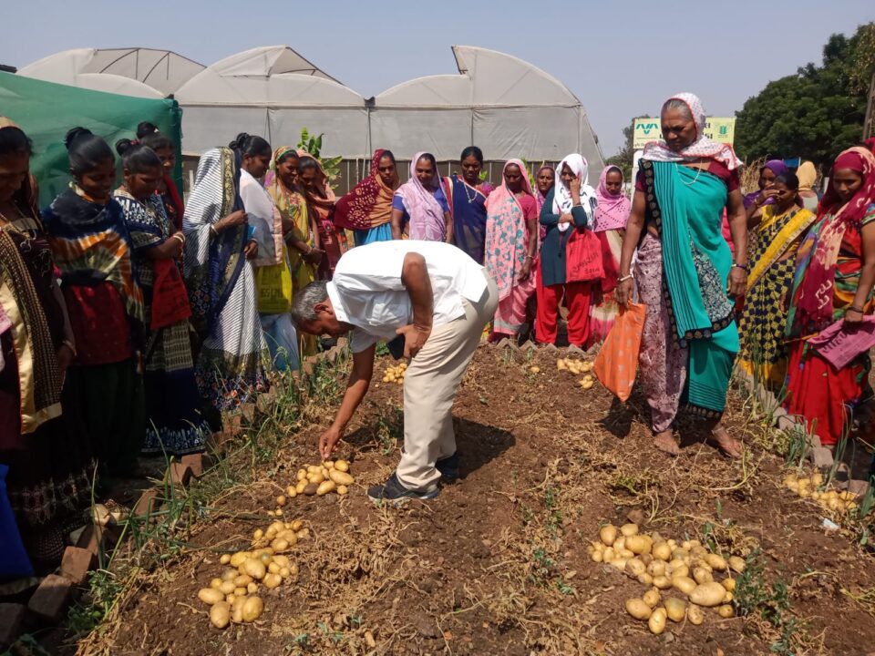 કૃષિ વિજ્ઞાન કેન્દ્ર ખાતે નવતર પ્રયોગ અંતર્ગત ડો. પી. ડી. વર્મા (વરિષ્ઠ વૈજ્ઞાનિક અને વડા ) અને ખેડૂત બહેનોએ નર્મદા પોષણ વાટિકામાંથી 14 કિલો જેવા બટાકા કાઢ્યા હતા. નાના પ્લોટમાં 1 કિલો બટાકા રોપવામાં આવ્યા હતાં. જેમાંથી 14 કિલો બટાકાનું ઉત્પાદન થયું હતું. કે.વિ.કે. ના વડા ડૉ. પી. ડી. વર્મા એ ખેડૂત બહેનોને બટાકાની ખેતી પદ્ધતિ વિશે અને પોતાના ઘરના વાડામાં કેવી રીતે બટાકાનું વાવેતર કરી ઘર ખર્ચ બચાવી શકો છો તે અંગે માહિતી આપી. આ નિદર્શનમાં બોરીપીઠા, મંડાળા અને ખૈડીપાડાનાં 30 જેટલા બહેનોએ ભાગ લીધો હતો.