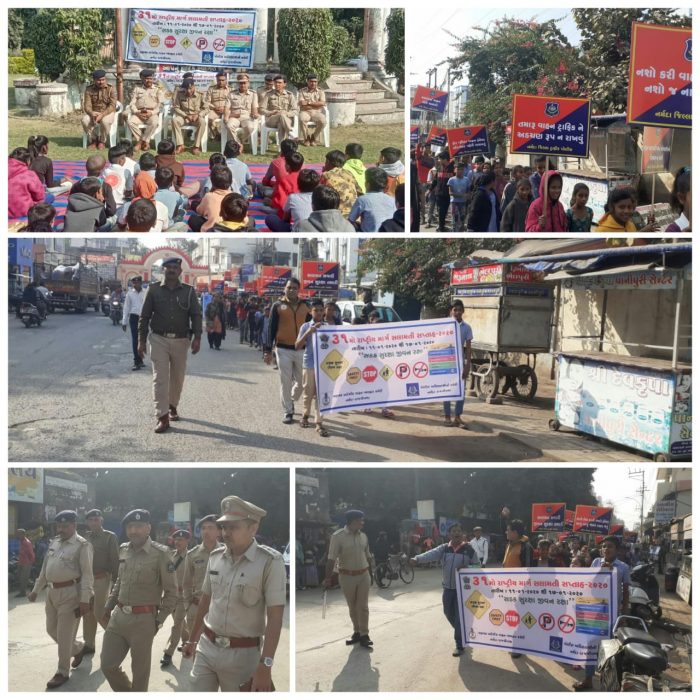 આજથી નર્મદા જિલ્લામાં 31માં રાષ્ટ્રીય માર્ગ સલામતી સપ્તાહની ઉજવણીની શરૂઆત થઈ છે ત્યારે નર્મદા જિલ્લામાં લોકોને ટ્રાફિકનાં નિયમો પ્રત્યે જાગરુતા લાવવા માટે પોલીસ દ્વારા સમગ્ર જિલ્લામાં પૂરા સપ્તાહ દરમિયાન વિવિધ કાર્યક્રમોનું આયોજન કરવામાં આવ્યું છે.જે સંદર્ભે આજે રાજપીપળા ખાતે એક જનજાગૃતિ રેલીનું આયોજન કરવામાં આવ્યું હતું.