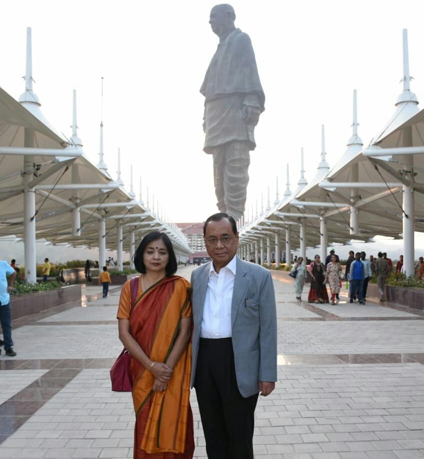 સુપ્રિમ કોર્ટના નિવૃત્ત ચીફ જસ્ટીસશ્રી રંજન ગોગોઇએ તેમના ધર્મ પત્નિ રૂપાંજલી ગોગોઇ સાથે આજે નર્મદા જિલ્લાના કેવડીયા કોલોની ખાતે સ્ટેચ્યુ ઓફ યુનિટીની મુલાકાત લઇ અખંડ ભારતના શિલ્પી સરદાર વલ્લ્ભભાઇ પટેલ સાહેબની અતિ વિરાટ પ્રતિમાની ભાવવંદના કરી હતી.