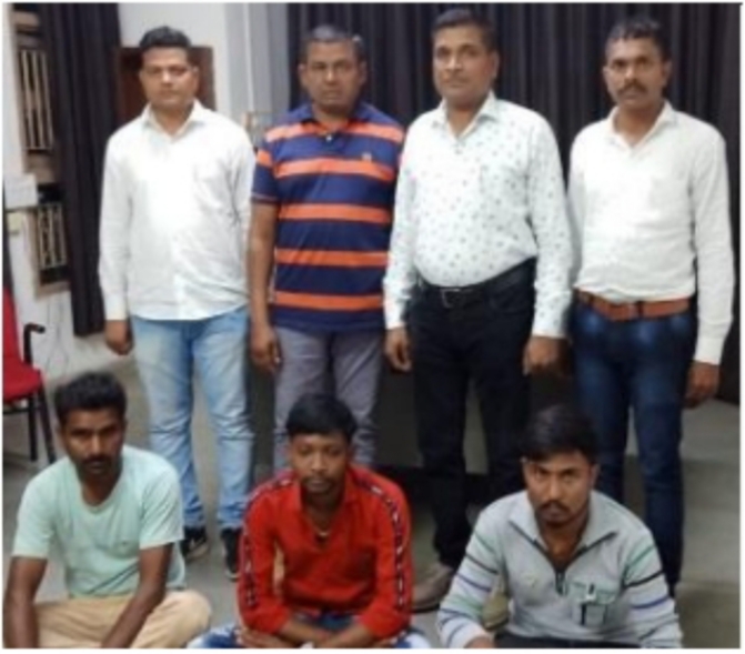 રાજપીપળા નર્મદા પોલીસ વડા હિમકર સિંહએ જીલ્લામાં મિલ્કતના ગુનાઓને અંકુશમાં રાખવા સારૂ તેમજ અનડીટેક્ટ ગુનાઓ ડીટેક્ટ કરવા કામગીરીની સુચના આપતા એ.એમ.પટેલ,પીઆઇ,એલ.સી.બી.તથા સી.એમ.ગામીત,પીએસઆઇ એલ.સી.બી.તથા એલ.સી.બી. પોલીસ ટિમ દ્વારા તિલકવાડા પોલીસ સ્ટેશન વિસ્તાર માં ધરફોડ ચોરીના ગુનાની તપાસ કરતા કરીયાણાની દુકાનનું શટર તોડીને કરીયાણાનો સામાન તથા રોકડ રકમની ચોરી કરેલાની માહીતી મળેલ જેથી શકદારો તેમજ ખાનગી બાતમી મુજબ તપાસમાં હતા.દરમ્યાન ટેક્નીકલ સર્વેલન્સ આધારે આરોપી (૧) હેમરાજસિંહ અજીતસિંહ પરમાર (૨) સંજયભાઇ ઇશ્વરભાઇ બારીયા બંન્ને રહે બુજેઠા તા. તિલકવાડા જી.નર્મદા(3) દિનેશ ભાઇ જાદવભાઇ બારીયા રહે. ચનવાડા તા.ડભોઇ જી.વડોદરાની પુછપરછ દરમ્યાન બુજેઠા ગામે કરીયાણાની દુકાનમાં ચોરી કાર્યની કબુલાત કરતા ત્રણેય આરોપીઓને મુદ્દામાલ સાથે અટક કરવામાં આવેલ ત્યારબાદ ત્રણેય આરોપીઓને તિલકવાડા પોલીસને સોંપવામાં આવ્યા હતા.