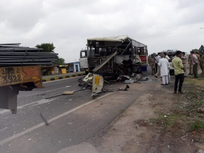 પ્રાપ્ત માહિતી મુજબ આજે સવારે ૧૧ વાગ્યે વડોદરા નવાગામ ડેમ સરકારી બસ નંબર જી.જે ૧૮ ઝેડ ૨૫૨૬ ને ગરૂડેશ્વર ચોકડી પર આવેલા નર્મદા શોરૂમની સામે લોખંડનાં સળિયા ભરેલ કન્ટેનરમાં સરકારી બસ પાછળથી ઘુસી જતાં ભયાનક અકસ્માત સર્જાયો હતો. આ આકસ્માતમાં ડ્રાઈવર અને કંડકટર સહિત બસમાં બેઠેલા અન્ય મુસાફરોને પણ ઈજા પહોંચી હતી. તમામ ઈજાગ્રસ્તોને તત્કાલ ગરૂડેશ્વર સી.એસ.સી. હોસ્પિટલ ખાતે દાખલ કરવામાં આવ્યા હતા.