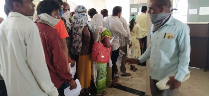 નર્મદા જિલ્લામાં જિલ્લા કલેક્ટર મનોજ કોઠારીએ જાહેરનામું બહાર પાડ્યું હતું એમાં જણાવ્યું હતું કે લોકોએ માસ્ક ફરજિયાત પહેરવું તેમજ સોશીયલ ડિસ્ટન્સ રાખવું છતાં નર્મદા જિલ્લાનાં રાજપીપળા ખાતે આવેલ મામતદાર ઓફિસનાં જનસેવા કેન્દ્ર ખાતે લોકટોળા ઉમટી પડતાં જિલ્લા કલેક્ટરનાં જાહેરનામાનો છડે ચોક ઉલ્લંઘન જોવા મળ્યું હતું. હાલ લોકોની સુવિધા માટે આવકનો દાખલો, જાતિનો દાખલો તેમજ સ્ટેમ્પ માટે જનસેવા કેન્દ્રમાં લોકો ઉમટી પડયા છે. પરંતુ મામતદાર પરમારએ સનેટાઈઝર તેમજ સોશીયલ ડિસ્ટન્સ જળવાય તેનો ધ્યાન રાખે તેવી લોકોએ માંગણી કરી હતી.