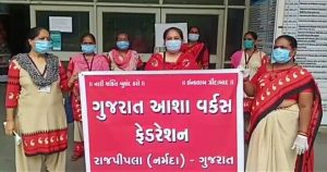 આજે રાજપીપળા ખાતે ગુજરાત આશા વર્કર ફેડરેશન નર્મદા જિલ્લા દ્વારા પોતાની પડતર મંગણીઓને લઈ જિલ્લા કલેકટરને એક આવેદનપત્ર આપવામાં આવ્યું હતું. જેમાં જણાવ્યું હતું કે ગુજરાત રાજયમાં સરકાર દ્વારા અર્બન હેલ્થ સેન્ટર સ્વાસ્થ્ય મિશન ચલાવવામાં આવે છે તેમાં બહેનો આશા વર્કર તરીકે ફરજ બજાવે છે જેમાં તેને ઇન્સેટીવ રૂપે નાણાં ચૂકવામાં આવે છે. સરકાર દ્વારા પ્રજાના સ્વાસ્થ્ય ને લઈને જે પડકાર રૂપે સમસ્યાઓ જેવી કે પોલીયો, માતા મૃત્યુદર, બાળ મૃત્યુદર, કુપોષણ, સ્વાઈન ફ્લુ, ક્ષય, ચિકનગુનિયા, આયુષ્માન ભવ, મિશન ઇન્દ્રધનુષ્ય વગેરે રોગ બિનચેપી રોગો તેમજ હાલ ચાલતા કોરોના કોવીડ – ૧૯ નું સર્વે કરી સરકારની યોજનાઓ સફળ બનાવે છે. આ બહેનો આશરે ૧૦ થી ૧૫ વર્ષથી આ કાર્ય કરે છે આ કાર્યમાં મદદરૂપ બહેનોને તેનો બદલો આપવાને બદલે સરકાર દ્વારા તેમનું શોષણ કરવામાં આવે છે. વર્ષોથી સરકારની યોજનાઓમાં કાર્ય કરતી હોવા છતા તેઓના ભવિષ્યનું કોઈ ચોક્કસ ભાવિ નથી આથી આશા વર્કર બહેનોમા રોષની લાગણી ઉભી થાય છે. આશા વર્કર બહેનોની સમસ્યાને ઘ્યાને લઈને સરકારને વિનંતી છે કે તેઓને સરકારી કર્મચારી ઘોષિત કરી લઘુતમ વેતન ૧૮ હજાર કરી આપવા સરકારને આશા વર્કર બહેનોની મૂળભૂત માંગણીને ધ્યાને લઈ યોગ્ય કરવા વિનંતિ છે.