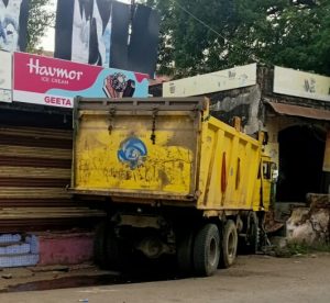 રાજપીપળા રાજરોક્ષી સર્કલથી હરસિધ્ધિ મંદિર તરફનાં વળાંકમાં એક હાઈવા ટ્રક દુકાનમાં ઘુસી જતા નુકસાન થયું.