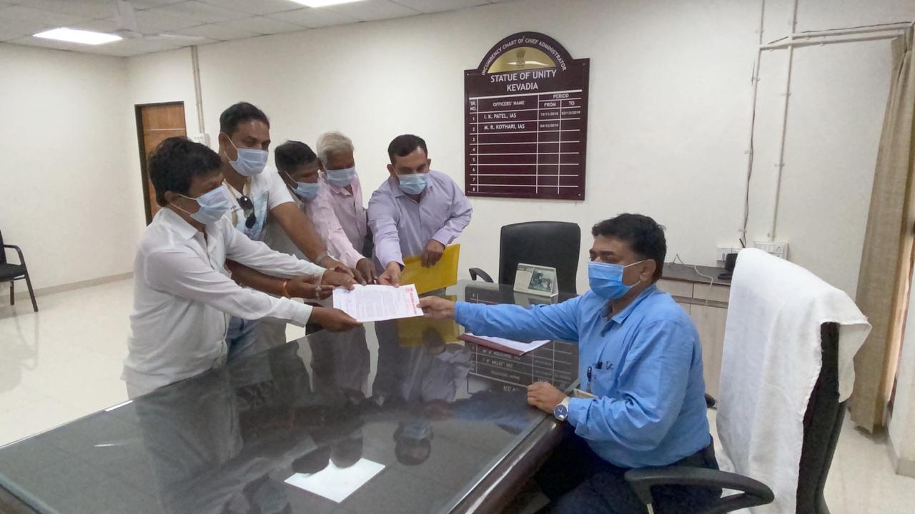 કેવડિયા સરપંચ ભીખાભાઇ તડવી,ઉપસરપંચ રણજિત તડવીએ કેવડિયા બંધ ના એલાન વિરુદ્ધ જિલ્લા કલેકટર, નર્મદા ડી.એ.શાહ ને આવેદનપત્ર પાઠવ્યું. કેવડીયા વિરતાર માં તા.૩0 અને ૩૧ મી ઓકટોમ્બરે કોઈ બહારની વ્યકિતઓ દ્વારા બંધનું એલાન આપેલ છે. જેનો કોઠી (કેવડિયા) ગ્રુપ ગ્રામ પંચાયતના નાગરિકો એ વિરોધ કરી નર્મદા કલેક્ટરને આવેદન પત્ર આપ્યું હતું. જેમાં જણાવ્યા મુજબ કેવડીયા કોલોની, ભુમલીયા, કોઠી ગભાણા,ભુતીયાદરા વિગેરે ગામોના નાગરીકો સાથે ચર્ચા બાદ નિર્ણય કરેલ છે કે આ બંધના એલાનનો અમેં સખત વિરોધ કરીએ છીએ.હાલમાં લોકો ખેતીના વ્યવસાય સાથે જોડાયેલા હોય ખેતી ઉત્પાદનનું વેચાણ ક૨વા કે જીવન જરૂરીયાતની ચીજવસ્તુઓની ખરીદી માટે ખુબ અગવડ પડે તેમ છે.જેથી બંધનુ એલાન ન હોવું જોઈએ. ખાસ કરીને કેવડીયા વિસ્તારના અનેક પ્રશ્નો સ૨કાર સાથે અવાર નવાર રજુઆતો ક૨તા આવ્યા છીએ અને હાલમાં પણ પંચાયત વિસ્તારના ના આગેવાનો તથા આ વિસ્તારના સામાજીક આગેવા નો સાથે સરકાર સાથે વાટાઘાટો માટે અનેક મિટીંગો ચાલુ છે. જેથી અમને વિશ્વાસ છે કે સરકાર આવા ઉપરિંથત પ્રશ્નો બાબતે સકારાત્મક ઉકેલ લાવશે.કેવડીયા વિસ્તારના ભવિષ્યમાં થનાર વિકાસ સંદર્ભે પણ જયારે જયારે જરૂર પડે અમો લોકોની વચ્ચે જઈને ગુંચને કાઢવાનો તથા પંચાયત ના સભ્યો ખડે પગે પ્રજા અને ગામના નાગરીકો સાથે ૨હયા છીએ.આ વિસ્તારમાં સંઘર્ષનું વાતવર બન્યુ ૨હે અને તેનો રાજકીય ખાટ કાઢવા માટે કેટલાક લોકો અમારા વિસ્તારમાં આવી બીન જરૂરી જુઠાણા ફેલાવી પ્રજામાં ગેરમાર્ગે દોરવા અને અસંતોષ ફેલાવવા જે પ્રયત્નો અનેક સંગઠનો મા૨ફતે કરવામાં આવે છે.જેને અમો સખત શબ્દોમાં વખોડી કાડીએ છીએ.અમારા વિસ્તારમાં સુખ, શાંતિ અને સમૃધ્ધિના માર્ગ ખુલવાના છે ત્યારે આવા અસામાજીક તત્વો આવી હરકતો કરી અમારા વિસ્તારને કઈ દિશામાં લઈ જવા માગે છે તે સમજાતુ નથી. અમારા વિસ્તા૨ ને બદનામ કરી વિસ્તારને અધોગતિ ત૨ફ જતા રોકવા કાયદા કાનુનની દ્રષ્ટિ એ યોગ્ય કાર્યવાહી કરવા મારી અને ગ્રમજનોની વિનંતિ છે .તેમ આ આવેદન માં જણાવવા માં આવ્યું હતું.