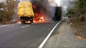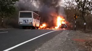 સાગબારાથી માત્ર ૫ કિમીના અંતરે નવીફળી અને અમિયાર ગામની વચ્ચે બસ, કન્ટેનર અને કપાસ ભરેલી ટ્રક વચ્ચે ત્રિપલ અકસ્માત સર્જાયો છે. જેમાં મળતી માહિતી મુજબ લગભગ કન્ટેનરનો ડ્રાઈવર કન્ટેનરની અંદર જ બળીને ભડતું થઈ ગયો હોવાનું અનુમાન સેવાઇ રહ્યું છે.