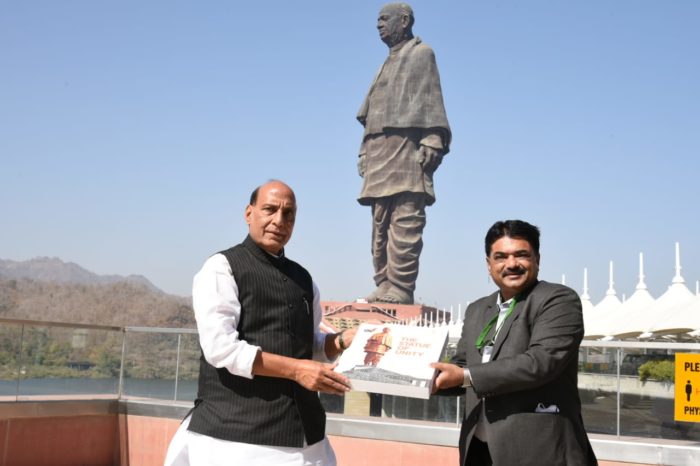કેન્દ્રીય રક્ષામંત્રી રાજનાથસિંહે અખંડ ભારતના શિલ્પી સરદાર વલ્લભભાઈ પટેલ સાહેબની પ્રતિમા સ્થળ સ્ટેચ્યુ ઓફ યુનિટી પરિસરની મુલાકાત લઈ ઉચ્ચાધિકારીઓ સાથે મુલાકાત કરી હતી તેમજ સૌની સાથે તસવીર પડાવી હતી.