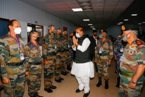 વિશ્વની સૌથી ઉંચી પ્રતિમા સ્ટેચ્યુ ઓફ યુનિટી સ્થળ નજીક ટેન્ટ સિટી-૨ ખાતે યોજાયેલી કમ્બાઈન્ડ કમાન્ડર્સ કોન્ફરન્સમાં ભાગ લેવા માટે કેન્દ્રીય રક્ષામંત્રીશ્રી રાજનાથસિંહ આજે સવારે કેવડીયા કોલોની ખાતે આવી પહોંચ્યા હતા. જયાં નર્મદા જિલ્લા કલેકટરશ્રી અને સ્ટેચ્યુ ઓફ યુનિટીના મુખ્ય વહિવટદાર ડી. એ. શાહ, વડોદરા રેન્જના આઇજી હરિકૃષ્ણ પટેલ તથા નર્મદા જિલ્લા પોલીસ અધિક્ષક હિમકરસિંહે તેમનુ ઉષ્માભર્યું સ્વાગત કર્યુ હતું.