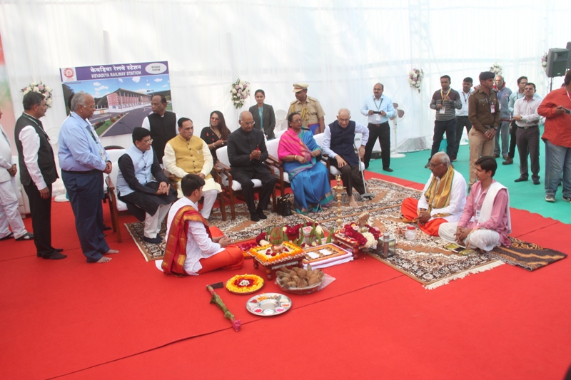 મુખ્યમંત્રી વિજય રૂપાણીએ રાષ્ટ્રપતિને ‘સ્ટેચ્યુ ઓફ યુનિટી’ના નિર્માણ બાબતેની વિસ્તૃત જાણકારી આપી માહિતગાર કર્યા હતા.ત્યાંથી તેઓ કેવડિયા ખાતે બનનાર નવા રેલવે સ્ટેશનના ભૂમિપૂજન માટે પહોંચ્યા હતા.તેઓએ અંદાજીત 20 કરોડના ખર્ચે બનનાર દેશનું પ્રથમ હરિત ભવન સર્ટિફિકેશન સાથેના રેલ્વે સ્ટેશનનું ભૂમિપૂજન કર્યું હતું.