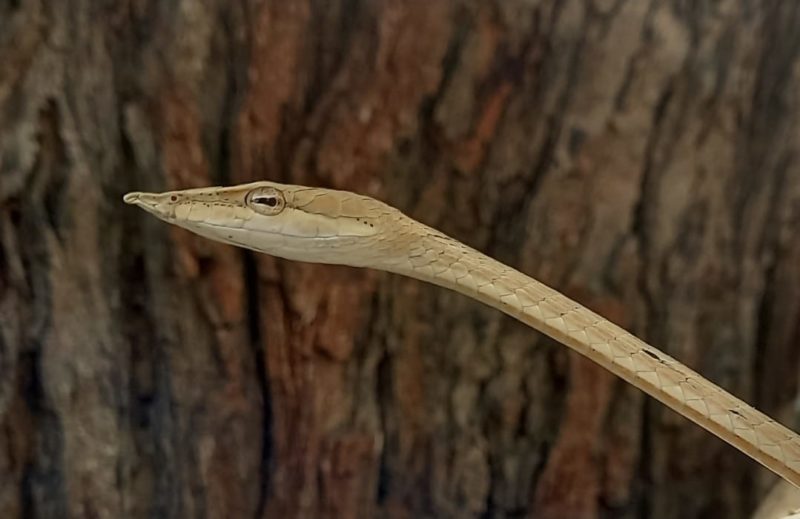 નર્મદા જિલ્લામા અતિ દુર્લભ ગણાતો અને ભાગ્યે જ બદામી રંગનો વાઈનસ્નેક દેખાયો છે. ગરમીમાં ઠંડક મેળવવા અને ખોરાકની શોધમાં સરીસૃપો બહાર નીકળી આવતા હોય છે જેમાં નર્મદા જિલ્લામા અતિ દુર્લભ ગણાતો અને ભાગ્યે જ બદામી રંગનો વાઈનસ્નેક દેખાયો હતો.