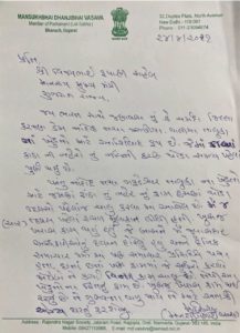 – સાંસદ મનસુખ વસાવા મુખ્યમંત્રી વિજયભાઈ રૂપાણીને પત્ર લખીને નહેરના કામોમાં વેઠ ઉતરાઈ હોવાની જાણ કરી.