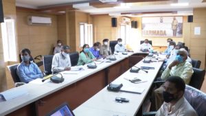 ગુજરાતના ગ્રામ ગૃહ નિર્માણ ગ્રામ વિકાસ પશુપાલન અને ગૌસંવર્ધન વિભાગના રાજય કક્ષાના મંત્રી તેમજ નર્મદા જિલ્લાના પ્રભારી મંત્રી બચુભાઇ ખાબડ તેમજ ગુજરાત રાજય માર્ગ પરિવહન નિગમના મેનેજીગ ડિરેકટર અને જિલ્લાના પ્રભારી સચિવ એસ.જે.હૈદર આજે રાજપીપલા કલેકટરાલય ખાતેના વિડીયો કોન્ફરન્સ હોલ ખાતે ખાસ ઉપસ્થિત રહીને ઉકત કાર્યક્રમમાં ભાગ લીધો હતો. આ પ્રસંગે જિલ્લા કલેકટર ડી.એ.શાહ, જિલ્લા વિકાસ અધિકારી એલ.એમ.ડિંડોર, જિલ્લા પોલીસ અધિક્ષક હિમકરસિંહ, નિવાસી અધિક કલેકટર એચ.કે.વ્યાસ, સહિત જિલ્લા આરોગ્યતંત્રના અધિકારીઓ પણ તેમાં જોડાયાં હતા.