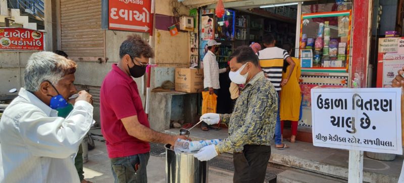 રાજપીપળા ખાતે શ્રીજી મેડિકલ સ્ટોરના સેવાભાવિ રાજેન્દ્રભાઈ પટેલ દ્વારા કોરોનાના બીજા રાઉન્ડમાં આયુર્વેદિક ઉકાળાનું વિના મૂલ્યે વિતરણ વિતરણ શરૂ કર્યું છે. જેમાં ગઈ કાલે 200 લીટર ઉકાળાનું વિતરણ રોડ પરથી પસાર થતા રાહદારીઓને ઉકાળાનું વિતરણ કર્યું હતું.