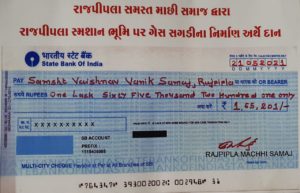 જેમાં રાજપીપલા સમસ્ત માછી સમાજ દ્વારા રાજપીપલા સ્મશાન ગૃહમાં ગેસની સગડીના નિર્માણ અર્થે રૂ.1,65,201/- નો ચેક દાનમા આપેલ છે, આ રકમ માછી સમાજના અગ્રણીઓ તથા યુવાનો દ્વારા દિન 5 માં સમાજના દરેક ઘરેઘરે જઈ અને એકત્રિત કરી ફાળો ઉઘરાવતા લોકોએ દિલ ખોલીને દાન કર્યું હતું અને સમસ્ત વૈષ્ણવ વણિક સમાજના યુવાનોને આ કામગીરીને આગળ વધારવા સુપ્રત કરી અને ખભાથી ખભા મિલાવીને કામગીરીને આગળ વધારવાની શુભકામનાઓ પાઠવી હતી અને આ કામગીરી માટે ભવિષ્યમાં પણ આર્થિક અને શારીરિક મદદરૂપ બનવાની પણ ખાત્રી આપી હતી અને રાજપીપલા અને આજુબાજુના વિસ્તારના તમામ સમાજ અને જનતાને ખુલ્લા હાથે દાન કરવાની અપીલ કરવામાં આવી હતી.