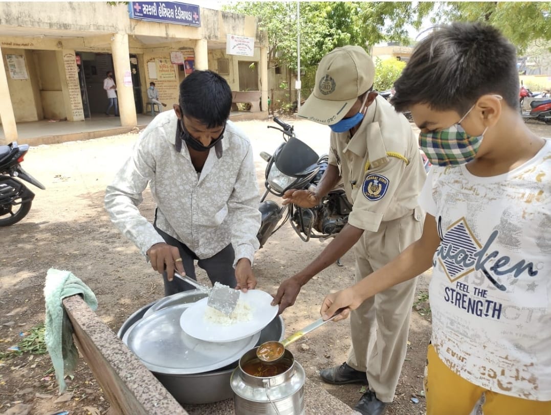 રાજપીપલા : આજે આપણે એક એવા સેવાભાવી વ્યક્તિ વિશેની વાત કરવી છે જેમણે કોરોનાના કપરા સમયમાં નિ:સ્વાર્થ ભાવે એક સેવા કાર્યનું અનોખું યોગદાન આપી રહ્યા છે. હાલ નર્મદામા કોરોનાના દર્દીઓથી હોસ્પિટલ ઉભરાઈ રહ્યું છે ત્યારે હોસ્પિટલમાં દાખલ દર્દીને તો ભોજન મળતું હોય છે પરંતુ ખાસ કરીને દર્દીના સગાઓ, જેઓ પોતાના સ્વજન માટે રાત દિવસ બહાર બેઠા હોય છે એમને જમવાની વ્યવસ્થા પોતે કરવી પડતી હોય છે, અને એમાં પણ જ્યારે બજાર અમુક સમય મર્યાદામાં જ ખુલતું હોય તો ઘણા લોકો ને જમવા માટે અગવડ થઈ જતી હોય છે, એ જ રીતે GRD અને હોમગાર્ડસના જવાનો પણ ગામડેથી ફરજ બજાવવા મોટી સંખ્યામાં તાલુકા મથકે આવતા હોય છે, આ બધાને છેલ્લા ઘણા સમયથી નિયમિત રીતે જમાડવાની વ્યવસ્થા આપણા સેવાભાવી રતનસિંહ વસાવાઅને તેમનું મિત્ર વર્તુળ કરી રહ્યા છે, એ પણ એકલા હાથે, જોકે રતનસિંહજીના ધર્મપત્ની પણ આ કાર્યને પોતાના માથે ઉઠાવી લીધું છે, તેઓ પોતે જ આ બધા જરૂરતમંદો માટે સેવાભાવથી જમવાનું બનાવે છે અને રતનસિંહ પોતાની ગાડીમાં પેક કરેલા ટિફિન બોક્સનું વિતરણ કરે છે. દેડિયાપાડાના આ સેવાભાવી દંપતી નિ:સ્વાર્થ ભાવે સેવા કરી રહ્યા છે.