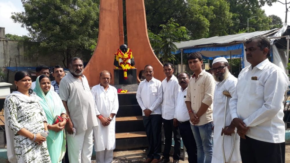 રાજપીપળા ગાંધી ચોક ખાતે આવેલી ગાંધીજીની પ્રતિમા ખાતે નર્મદા જિલ્લા કોંગ્રેસ સમિતિ દ્વારા 150મી ગાંધી જયંતીની ઉજવણી કરવામાં આવી હતી. આ પ્રસંગે નાંદોદ ધારાસભ્ય પીડી વસાવા સાથે કોંગ્રેસના કાર્યકર્તાઓએ ગાંધીની પ્રતિમાને સુતરાંજલી પહેરાવી હતી સાથે નર્મદા જિલ્લા કોંગ્રેસ સમિતિના પ્રમુખ હરેન્દ્ર વાળંદ, તાલુકા પંચાયત કારોબારી સમિતિના અધ્યક્ષ શકુંતલાબેન ગોહિલ,બળવંતસિંહ ગોહિલ,પ્રફુલભાઇ પટેલ માલવ બારોટ મહિલા આગેવાન દક્ષાબેન તડવી ઉસ્માનભાઈ, શૈલેષભાઈ, નરેશભાઈ, રાજપીપળા નારપાલિકા સભ્ય કમલભાઈ ચૌહાણ શાહનવાઝ પઠાણ નિઝામભાઈ રાઠોડ સહીત ના ઓ હાજર રહ્યા હતા.