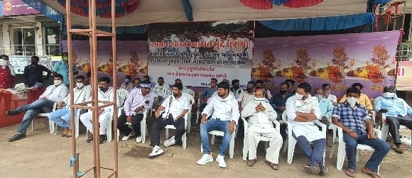 નર્મદા જિલ્લાના ગામોને સ્વતંત્ર ગ્રામ પંચાયતનો દરજ્જો આપવાની માંગ આમું આદિવાસીઓના આમું સંગઠન દ્વારા ગુજરાત સરકાર દ્રારા ભારતના બંધારણ અને ગુજરાત પંચાયત અધિનિયમોનો ભંગ થતા આજથી રાજપીપલા કલેકટર કચેરી સામે આદિવાસી સંગઠનોએ ધરણા પ્રદશૅનકરી કલેકટરને આવેદન પત્ર આપ્યું હતું. આ પ્રસંગે આમું સંગઠનના પ્રમુખ મહેશભાઈ વસાવા તથા તેમની સાથે ડેડીયાપાડાના ધારાસભ્ય સહિત પાચ તાલુકાના આદિવાસી આગેવાનોએ આજથી પાંચ દિવસ માટે ધરણા પ્રદર્શન કરી સુત્રોચાર કરી વિરોધ પ્રદર્શન કરી આંદોલનનું રણશિંગુ ફૂંક્યુ હતું.