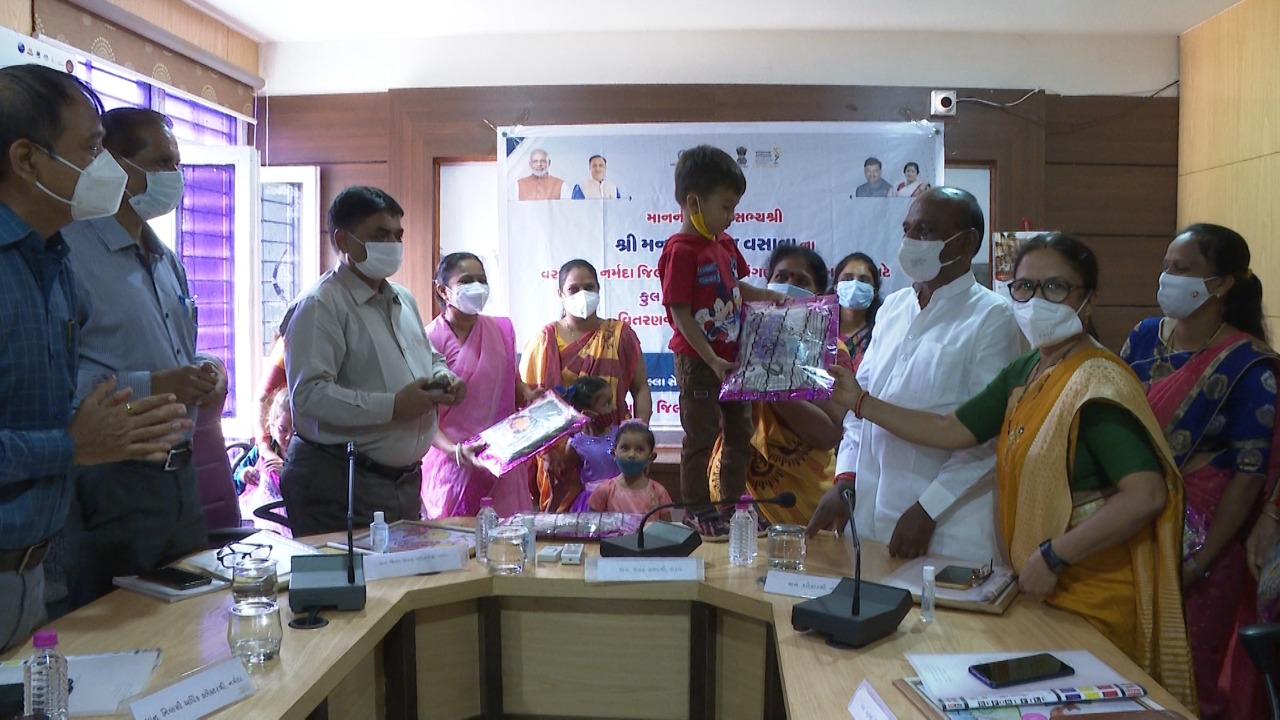 ગુજરાતના મુખ્યમંત્રી વિજયભાઇ રૂપાણીએ આજે ગાંધીનગર ખાતેથી ગુજરાતના મહિલા અને બાળ કલ્યાણ તેમજ વન અને આદિજાતિ વિકાસ વિભાગના મંત્રી ગણપતસિંહ વસાવા, મહિલા અને બાળ કલ્યાણના રાજયકક્ષાના મંત્રી વિભાવરીબેન દવે, મહિલા અને બાળ કલ્યાણના સચિવ અને કમિશનર કે.કે. નિરાલા તેમજ નિયામક ડી.એન. મોદી વગેરેની ઉપસ્થિતિમાં ડિજીટલ માધ્યમથી વિડીયો કોન્ફરન્સ દ્વારા રૂા. ૩૬.૨૮ કરોડના ખર્ચે આકાર પામેલી રાજયભરની ૫૩,૦૨૯ આંગણવાડીઓના ૧૪ લાખ જેટલા નાના બાળકો-ભૂલકાંઓને યુનિફોર્મ વિતરણ યોજનાનો પ્રારંભ કરાવ્યો હતો, જેમાં નર્મદા જિલ્લા કલેકટરાલય ખાતે ભરૂચના સંસદસભ્યશ્રી મનસુખભાઇ વસાવા, જિલ્લા કલેકટરશ ડી.એ.શાહ, જિલ્લા વિકાસ અધિકારી પી.ડી.પલસાણા, નિવાસી અધિક કલેક્ટર એચ.કે વ્યાસ, આઇસીડીએસના પ્રોગ્રામ ઓફિસર ક્રિષ્નાકુમારી પટેલ, આંગણવાડીના લાભાર્થી ભૂલકાંઓ વગેરેએ પણ આ કાર્યક્રમમાં જોડાઇને તેમાં સહભાગી બન્યા હતા. નવી શિક્ષણ નીતિ અનુસાર પૂર્વ પ્રાથમિક શિક્ષણને વધુ મજબૂત બનાવવા આંગણવાડીમાં અભ્યાસ કરવા આવતા બાળકોના સર્વાંગી વિકાસ માટે રૂા. ૫ કરોડની પા… પા… પગલી યોજના અમલી બનાવવાનું આયોજન કરાયું હોવાનું મુખ્યમંત્રીએ જણાવ્યું હતું.