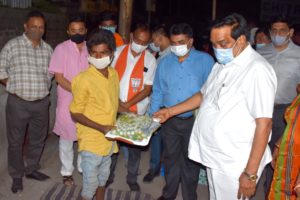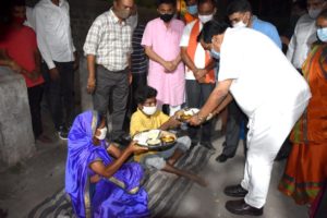 નવસારીના સાંસદ અને ગુજરાત પ્રદેશ ભાજપા પ્રમુખ સી.આર.પાટીલે નર્મદા જિલ્લાની મુલાકાત દરમિયાન જિલ્લા પ્રશાસન દ્વારા સેવાભાવી સંસ્થાના સહયોગ થકી હાથ ધરાયેલા “નોંધારાનો આધાર પ્રોજેક્ટ” અંતર્ગત શરૂ કરાયેલા “સેન્ટ્રલ કિચન” દ્વારા રાજપીપલા શહેરમાં ફૂટપાથ પર પોતાનું જીવન ગુજારતા લોકોને બે ટંકનું ભોજન પુરું પાડવાની માનવીય તાસભર પ્રવૃત્તિ અંતર્ગત રાજપીપલામાં હરસિધ્ધી માતાજીના મંદિર સામેના વિસ્તારમા વસવાટ કરતા આવા નિરાધાર પરિવારના સભ્યોને પાટીલે આજે સાંજનું ભોજન પિરસ્યું હતું.