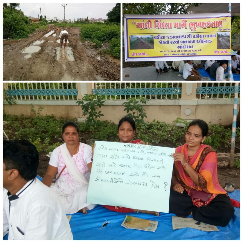 રાજપીપળા જકાતનાકા થી વડીયા ગામ સુધીનો રસ્તો નહિ બનતા નાછૂટકે રહીશોએ ભૂખહડતાળનો સત્ર રમવાનો વારો આવ્યો છે.આ અંગે રહીશોએ કલેકટરને આવેદનપત્ર આપ્યું છે.