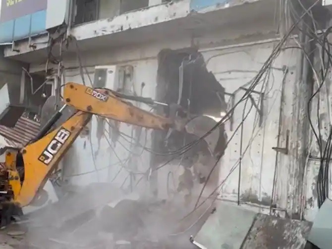 રાજસ્થાનના જયપુરમાં સોમવારે શિક્ષક ભરતી પેપર લીક મામલામાં પેપર લીકના આરોપીઓના કોચિંગને બુલડોઝરથી તોડી પાડવામાં આવ્યું છે. મીડિયા રિપોર્ટ્સ અનુસાર, ઝોન-5 ગુર્જર કી થડી, ગોપાલપુરા બાયપાસ પર બુલડોઝર ચલાવવામાં આવ્યું હતું. આ કાર્યવાહીમાં અધિગમ કોચિંગ ઈન્સ્ટિટ્યૂટનું બિલ્ડીંગ તોડી પાડવામાં આવ્યું હતું. જયપુર ડેવલપમેન્ટ ઓથોરિટીના જણાવ્યા અનુસાર, રોડ સીમા પર ગેરકાયદે કબજો-અતિક્રમણ પર આ ડિમોલિશનની કાર્યવાહી કરવામાં આવી છે. આ અંગે ત્રણ દિવસ પહેલા નોટિસ આપવામાં આવી હતી.