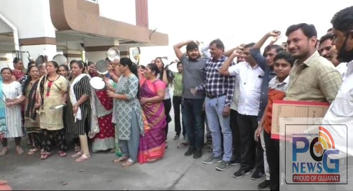 સુરતમાં યોગીચોક વિસ્તારના પ્રવાસીઓએ બિલ્ડર વિરુદ્ધ વિરોધ પ્રદર્શિત કર્યો છે. સુરતના યોગીચોકના સોસાયટીના રહેવાસીઓ જણાવે છે કે આ વિસ્તારમાં બિલ્ડરો દ્વારા અમોને કોઈપણ પ્રકારની સુવિધાઓ પૂરી પાડવામાં આવેલ નથી, અહીંના બિલ્ડરોએ સ્થાનિક રહેવાસીઓ સાથે છેતરપિંડી કરેલ છે. યોગી ચોક વિસ્તારમાં બિલ્ડરો દ્વારા કોઈપણ પ્રકારની સુવિધાઓ પૂરી પાડવામાં ન આવતા અહીંના સ્થાનિકોએ માટલા ફોડી, થાળી વગાડી, નારેબાજી કરી પોતાનો વિરોધ પ્રદર્શિત કર્યો હતો.