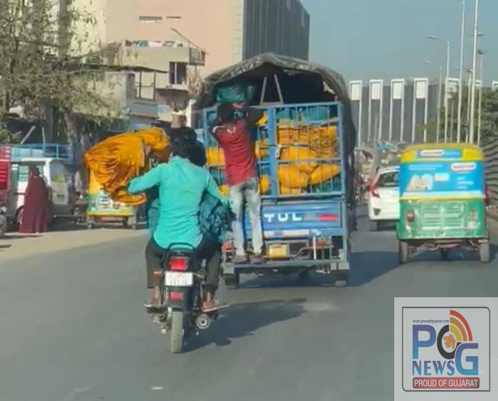 સુરતમાં અવારનવાર ચોરીની ઘટનાઓ બનતી રહે છે પરંતુ ચાલુ ટેમ્પોમાંથી બે બાઇક સવાર દ્વારા કાપડના તાકાની ચોરી કરવામાં આવતી હોય તેવું જાણવા મળ્યું છે. સુરતમાં જાહેર માર્ગ પર કાપડના તાકા લઈને જતા આઇસર ટેમ્પોની પાછળ લટકીને એક બાઈક સવાર દ્વારા કાપડના તાકાની ચોરી કરવામાં આવતી હોય તેમજ આ અજાણ્યા શખ્સના સાગરીત પાછળ આવતા હોય કાપડના તાકા આઈસર ટેમ્પોમાંથી કાઢીને એમને આપવામાં આવતા હોય આ અજાણ્યા શખ્સો ચોરી કરતા સમયે કેમેરામાં કેદ થયા હતા આ રીતે ચોરી કરનાર શખ્સનો વિડીયો આજે સોશિયલ મીડિયા પર વાયરલ થતાં કાપડના મિલમાલિકો તેમજ સુરતમાં કાપડના વ્યવસાય સાથે સંકળાયેલા લોકોમાં જાગૃતતા રાખવા આ વિડીયો પરથી જાણવા મળ્યું છે આઇસર ટેમ્પોની પાછળ લટકીને કેવી રીતે કાપડના તાકાની ચોરી કરે છે તે પણ આ વીડિયોમાં જોવા મળ્યું છે. સોશિયલ મીડિયામાં આ વીડિયો વાયરલ થતાં કાપડના ધંધાર્થીઓ સચેત રહેવા પ્રયત્નો હાથ ધર્યા છે. આખરે આ શખ્સો કોણ છે ? અને આ રીતે કેમ ચોરી કરે છે? તેવા અનેક સવાલો આ વિડીયો પરથી ઉઠવા પામ્યા છે.