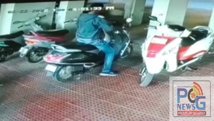 સુરતમાં અવારનવાર ચોરીના કિસ્સાઓ બનતા રહે છે. સુરતના સરથાણા વિસ્તારમાં ધોળા દિવસે તસ્કરો પાર્કિંગમાં પાર્ક કરેલી મોપેડની ચોરી કરી ફરાર થઈ ગયા છે. આ અજાણ્યા શખ્સો એ 30 મિનિટ સુધી રેકી કરેલી હોય અને રેકીના આધારે ચોરી કરી ફરાર થઈ ગયા છે.