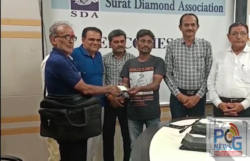 સુરત કતારગામના નંદુ ડોશીની વાડીમાં આવેલ પંચદેવ નામના કારખાનાના પાર્કિંગમાંથી સફાઈ કામદારને હીરા ભરેલા બે પેકેટ મળ્યા હતા, સફાઈ કામદારે ઈમાનદારી દાખવી પોતાના શેઠને હીરા પરત કર્યા હતા અને શેઠ દ્વારા ડાયમંડ એસોસીએશનનો સંપર્ક કરી મૂળ માલિકને પરત કર્યા હતા. જે બાદ સફાઇ કર્મીની ઈમાનદારી બદલ તેને સન્માનિત પણ કરાયો હતો.