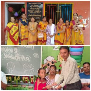૫(પાંચ) હેલ્થી ( તંદુરસ્ત ) ભુલકાઓને સ્પેશિયલ કીટ ઉપરાંત પ્રવેશ મેળવેલ તમામ ભૂલકાઓને સ્થાનીક જાગરૂક મહિલા નગરસેવિકા નિમિષાબેન તરસાડીયા અને પ્રીતિબેન ગામીત તથા નગરસેવક રાકેશભાઈ ચૌધરી દ્વારા તિલક લગાડી કંકુ ચોખા અને પુષ્પથી વધાવી આવકારવામાં આવ્યા.