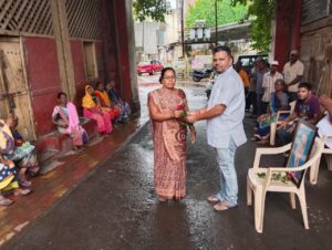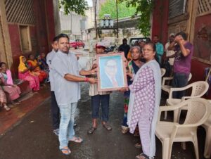 સવારે ૭=oo કલાકે જૂની નગરપાલિકા કચેરીએ બાગ સમિતીના અધ્યક્ષ નિમિષાબેન તરસાડીયા, લારી-ગલ્લા સમિતિના ચેરમેન રાકેશભાઇ ચૌધરી, નગર સંગઠનના ઉપપ્રમુખ અનુપભાઈ ટેલર, રાજનભાઇ ચૌધરી તથા સમાજિક આગેવાન હેમંતભાઇ તરસાડીયા, ચંદ્રકાન્તભાઇ પ્રજાપતિ આરોગ્ય વિભાગના સબ સેનીઇન્સ્પેક્ટર સુરેશભાઈ રાણા ઉપસ્થિત રહી આરોગ્યકર્મી ભાઇઓ-બહેનોને ડૉ. બાબાસાહેબ આંબેડકરજીની તસ્વીર સ્મૃતિ ભેટ અર્પણ કરી હતી. પ્રથમ સીનીયર સફાઇકર્મી ભાઈઓ-બહેનોને પુષ્પ આપી સન્માનિત કર્યા. બાદ તમામ કર્મચારીને પુષ્પ આપી સન્માનિત કર્યા હતા.