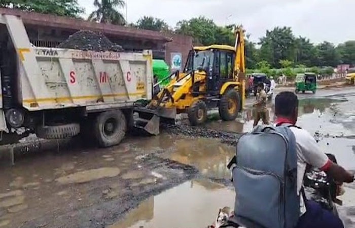 વરસાદે વિરામ લેતા સુરત પાલિકાએ તૂટેલા રસ્તા રિપેર કરવાની કામગીરી શરૂ કરી