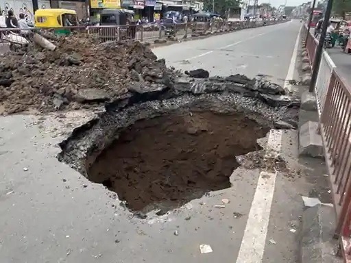 સુરત : કપોદ્રામાં BRTS રૂટમાં મસમોટો ભૂવો પડ્યો, તંત્ર દોડતું થયું, અવરજવર બંધ કરાઈ