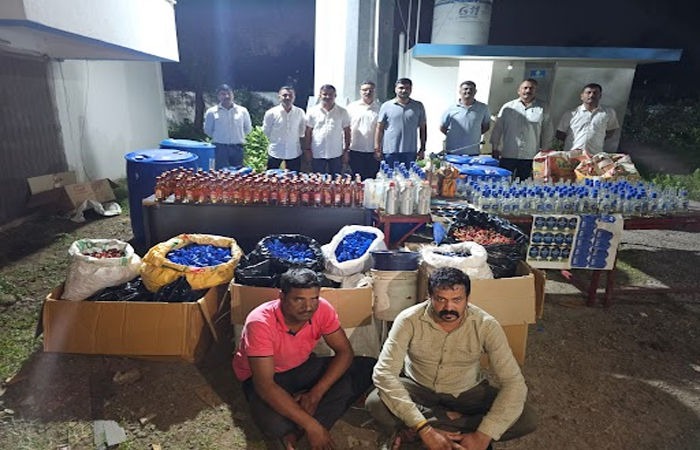 પીસીબીના સૂત્રો દ્વારા પ્રાપ્ત થતી વિગતો મુજબ કોન્સ્ટેબલ મિતેષભાઈ મનસુખભાઈ અને કોન્સ્ટેબલ રણવીસિંહ વિક્રમસિંહને મળેલી બાતમીના આધારે પીઆઈ આર.એસ.સુવેરા અને ટીમે ઈચ્છાપોર ગામ એકઝીકયુટીવ હોટલની પાછળ કેનાલ રોડ સ્થિત ડાયમંડનગર સોસાયટીના બંગલા નં.63 માં રેઈડ કરી હતી.પીસીબીએ ત્યાંથી જમીન દલાલ કલ્પેશભાઈ રામચંદ્રભાઈ સામરીયા ( ઉ.વ.42, રહે.ઘર નં.બી-26, સરીતા દર્શન સોસાયટી, મેરીયટ હોટલ પાસે, પાર્લે પોઈન્ટની નજીક, ઉમરા, સુરત ) અને ડ્રાઈવીંગનું કામ કરતા દુર્ગાશંકર ઉદયલાલ ખટીક ( ઉ.વ.34, રહે.ઘર નં.191, રવિનગર, કૈલાસનગર ચોકડી પાસે, પાંડેસરા, સુરત ) ( બંને મૂળ રહે.જલોદા, તા.છોટી સાદડી, જી.પ્રતાપગઢ, રાજસ્થાન ) ને ઈંગ્લીશ દારૂની ખાલી બોટલમાં કેમિકલયુક્ત દારૂ ભરતા રંગેહાથ ઝડપી લીધા હતા.